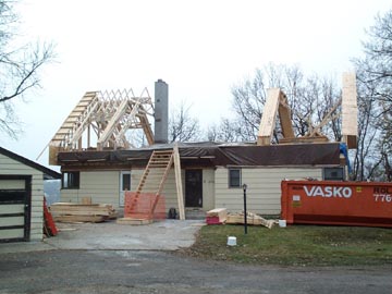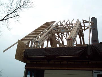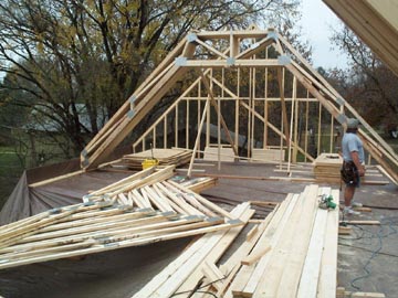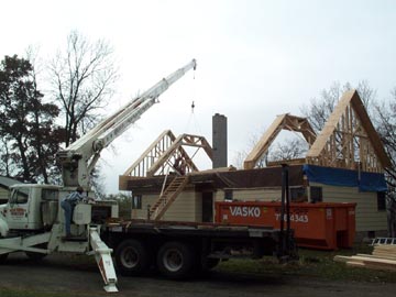 A crane moved all the roof trusses to the house and