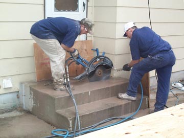 The concrete steps were cut to make it easier to remove them.