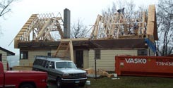 WHAT A DAY! Rick and Tim brought in some troops to help. 6 total carpenters were on the project so there was tremendous progress and alot of pictures. For day 8 there are 2 pages. The download will take a while. Please be patient.