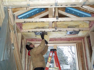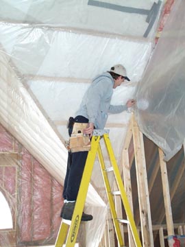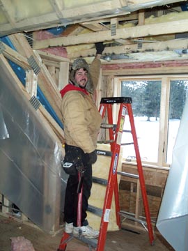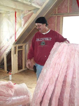 Here's Pat the Batt man. He's insulating the dormers.