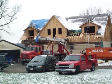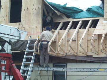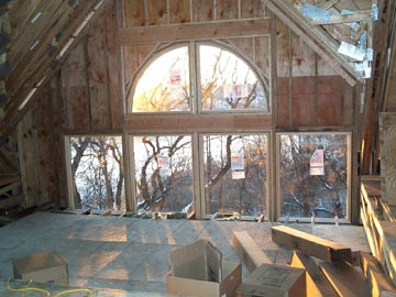 You can see the exterior steps that were built for contruction access and some tarpaper has been installed.